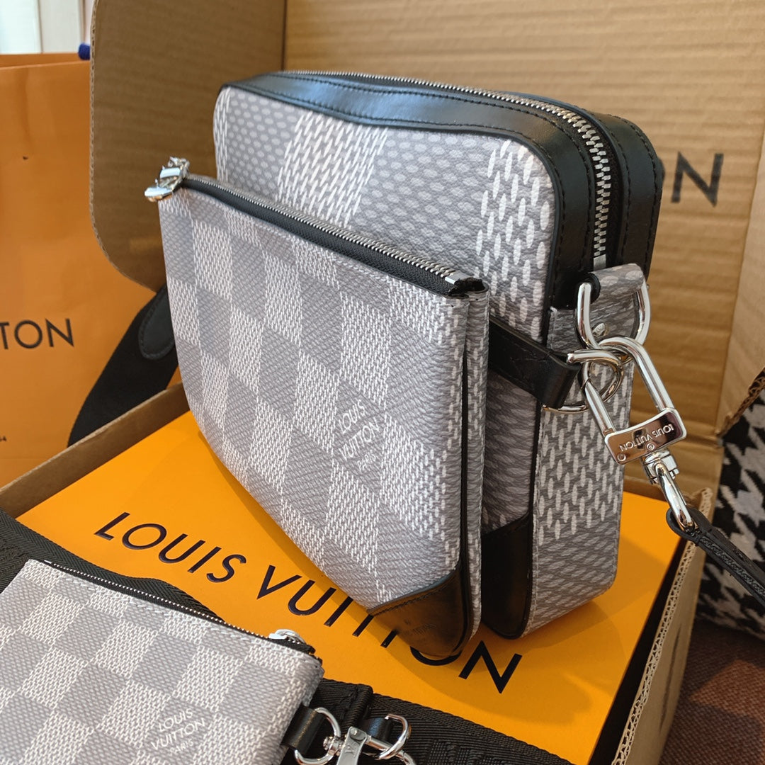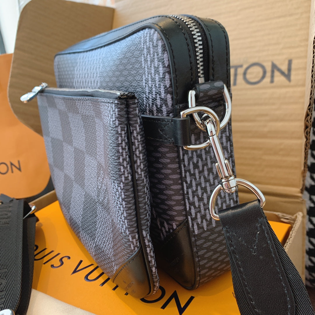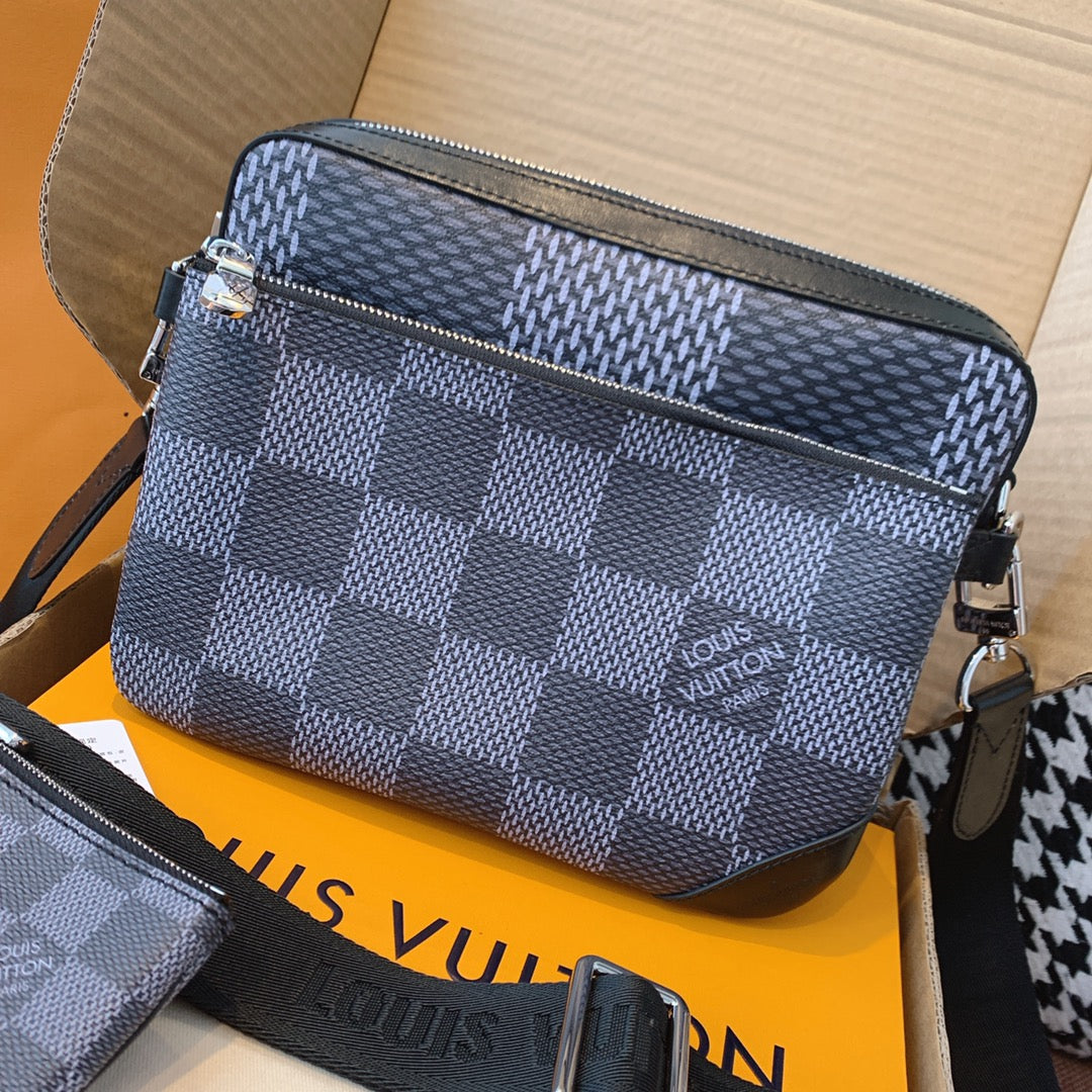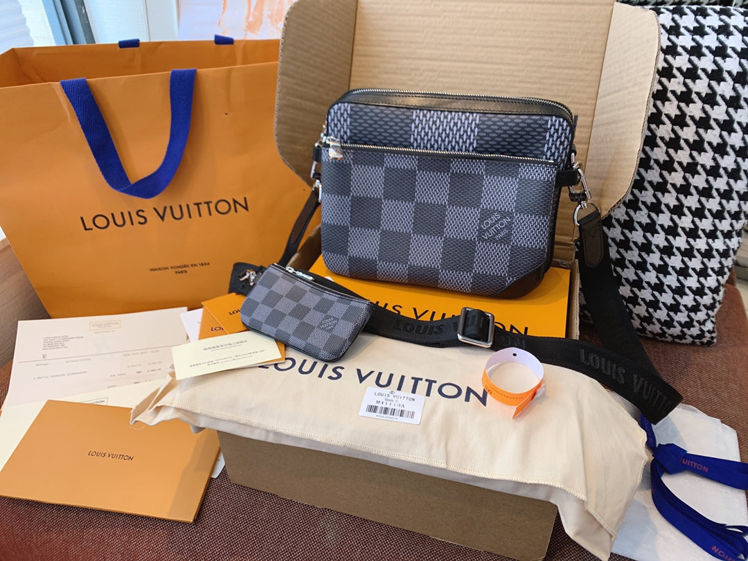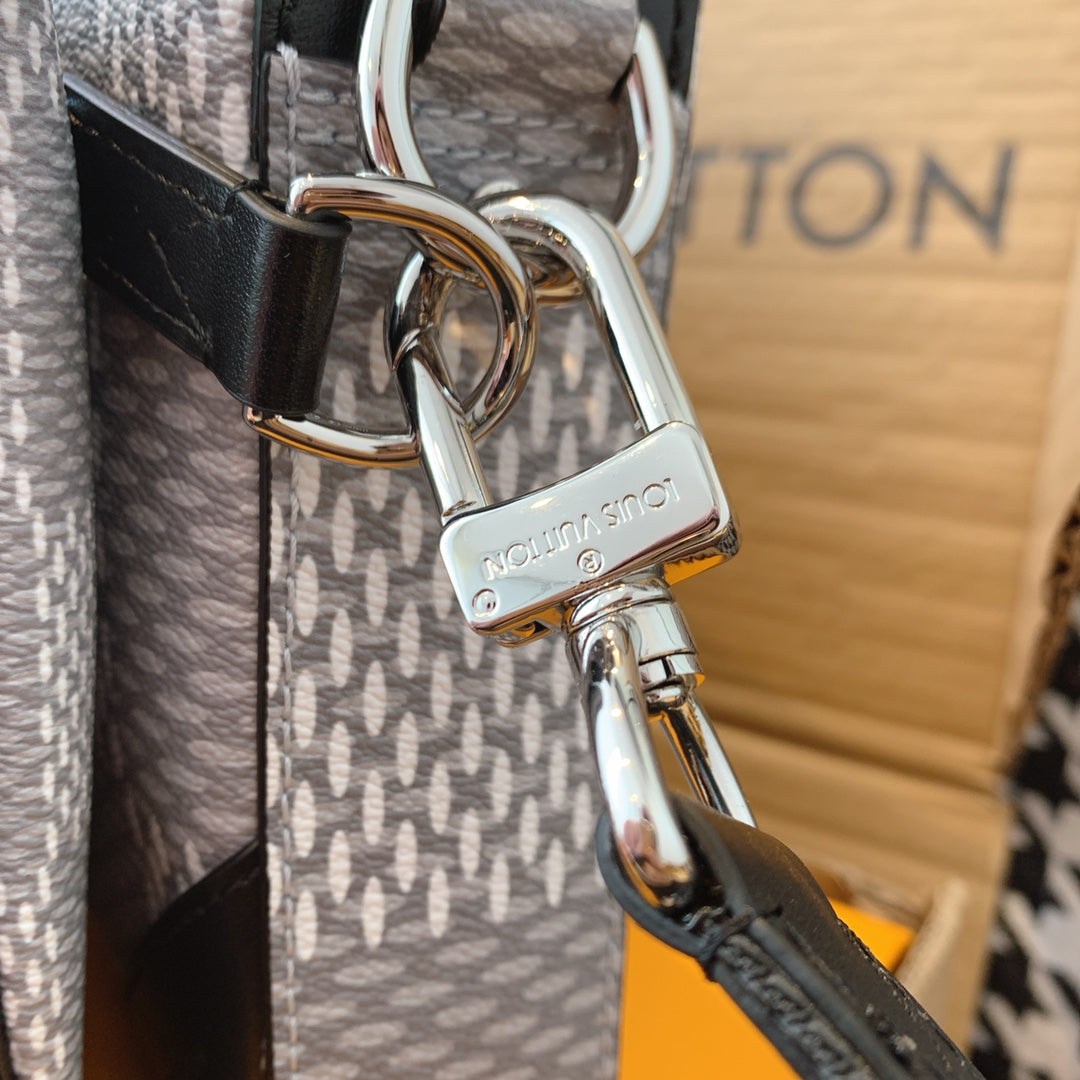 Introducing the classic checkerboard briefcase for men. Features 1. Online shopping packaging 2. Original imported hardware accessories 3. Original wax line 4. Original PVC➕ canvas with a faint fragrance 5. Dustproof bag inner label ➕ inner label of bag 6. The oil edge and closing position are exquisite
