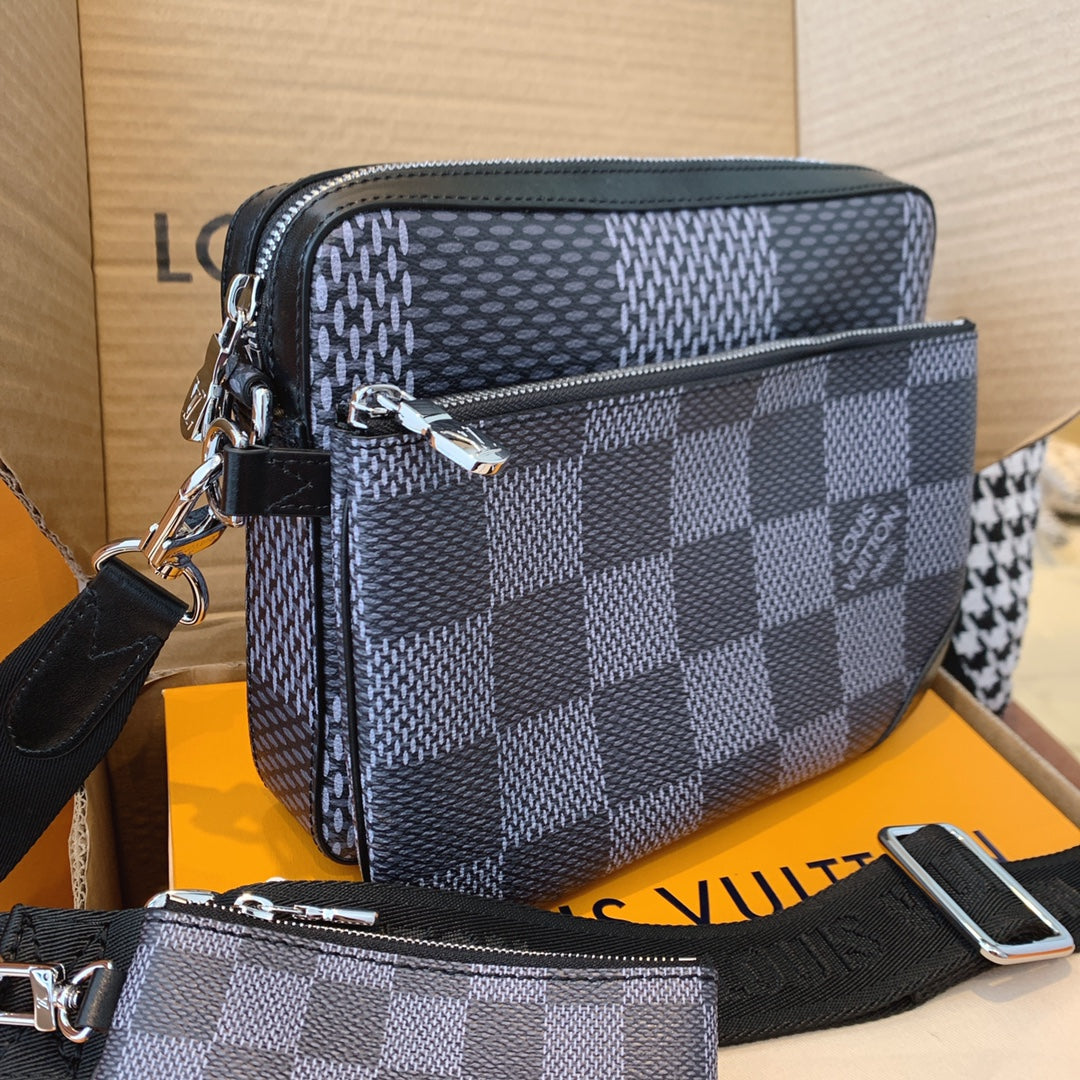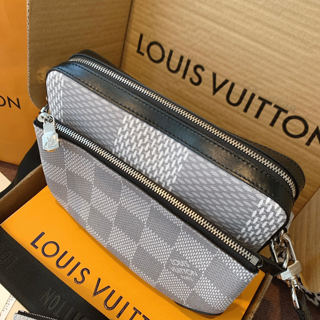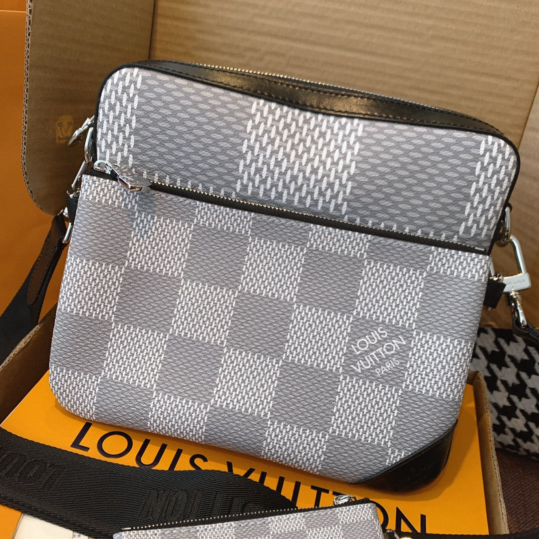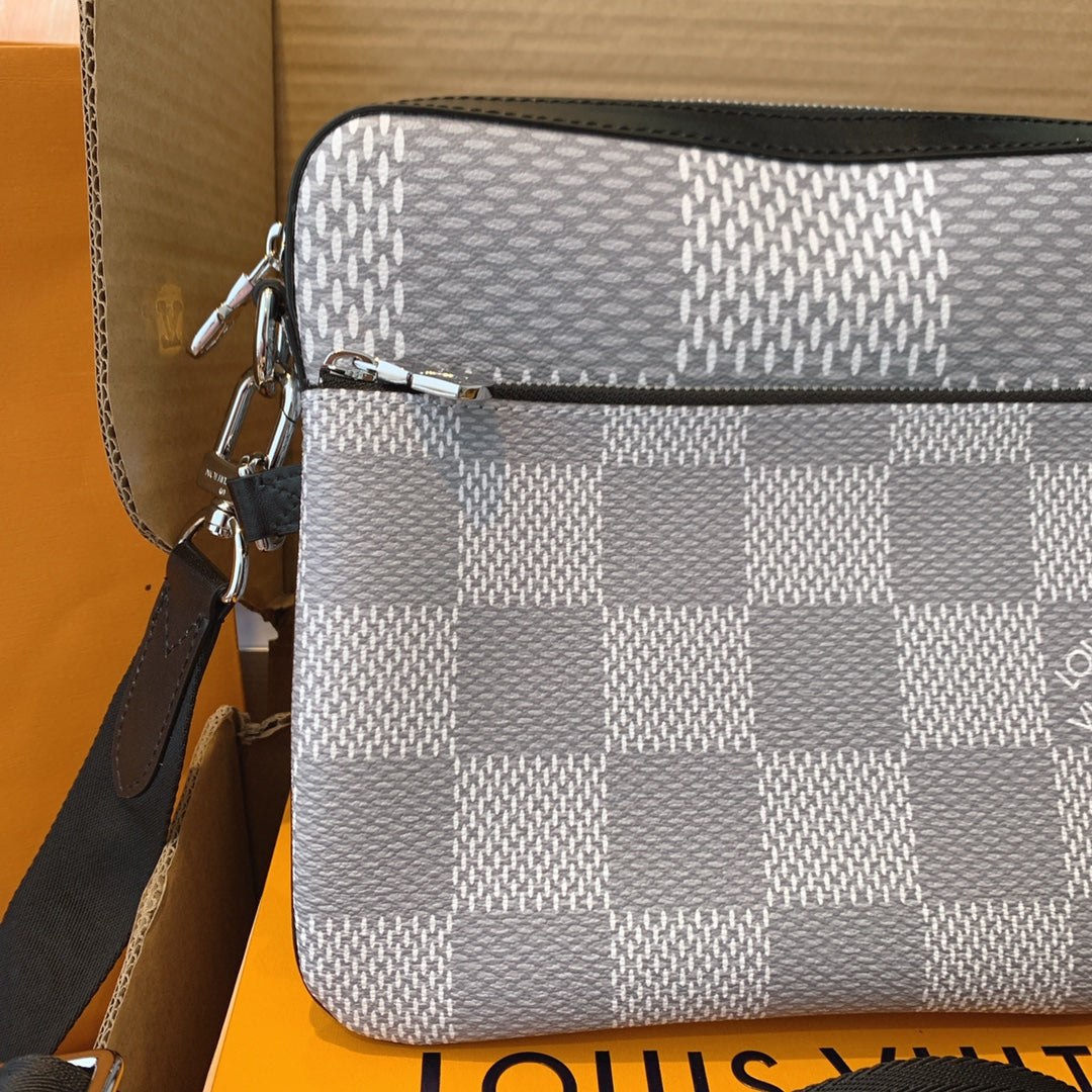 Introducing the classic checkerboard briefcase for men. Features 1. Online shopping packaging 2. Original imported hardware accessories 3. Original wax line 4. Original PVC➕ canvas with a faint fragrance 5. Dustproof bag inner label ➕ inner label of bag 6. The oil edge and closing position are exquisite