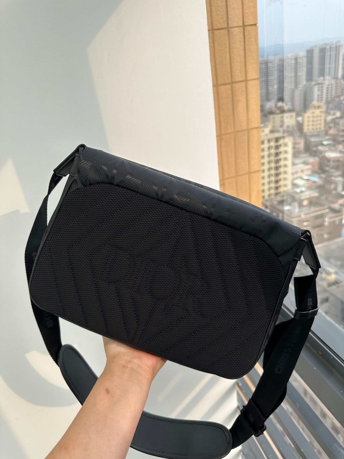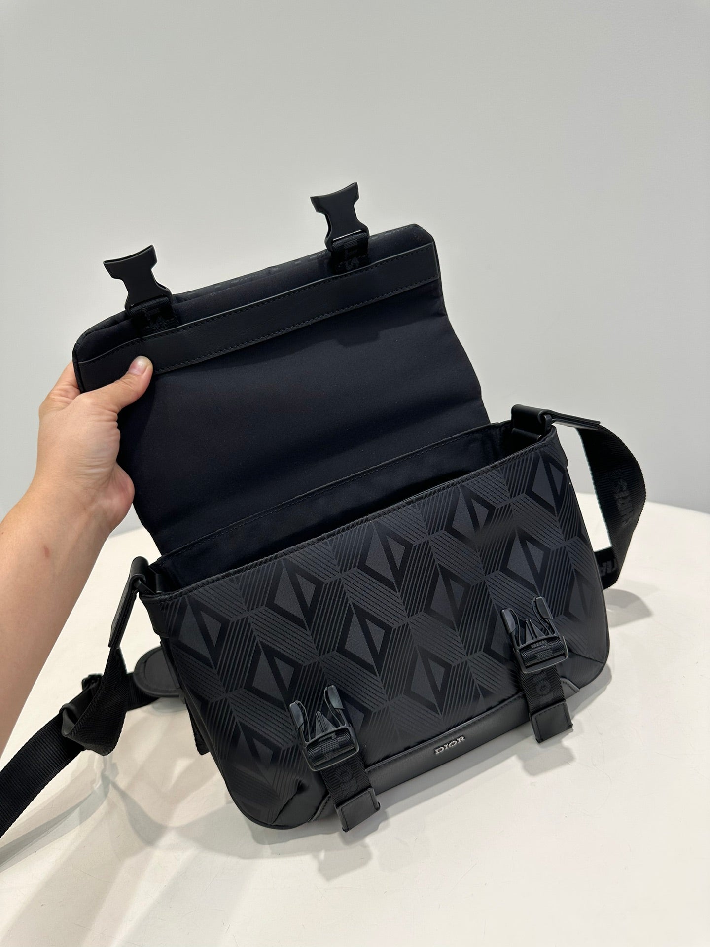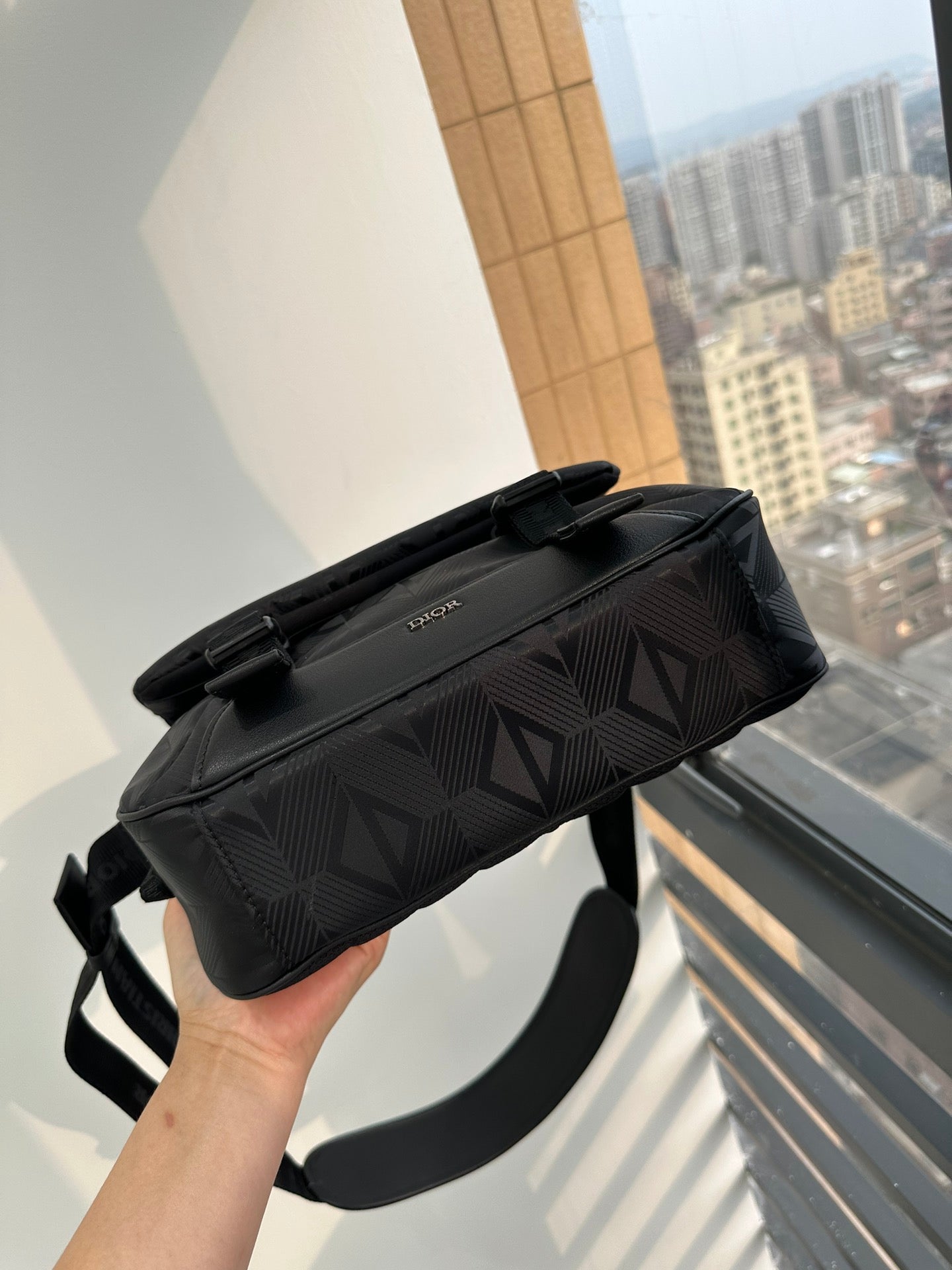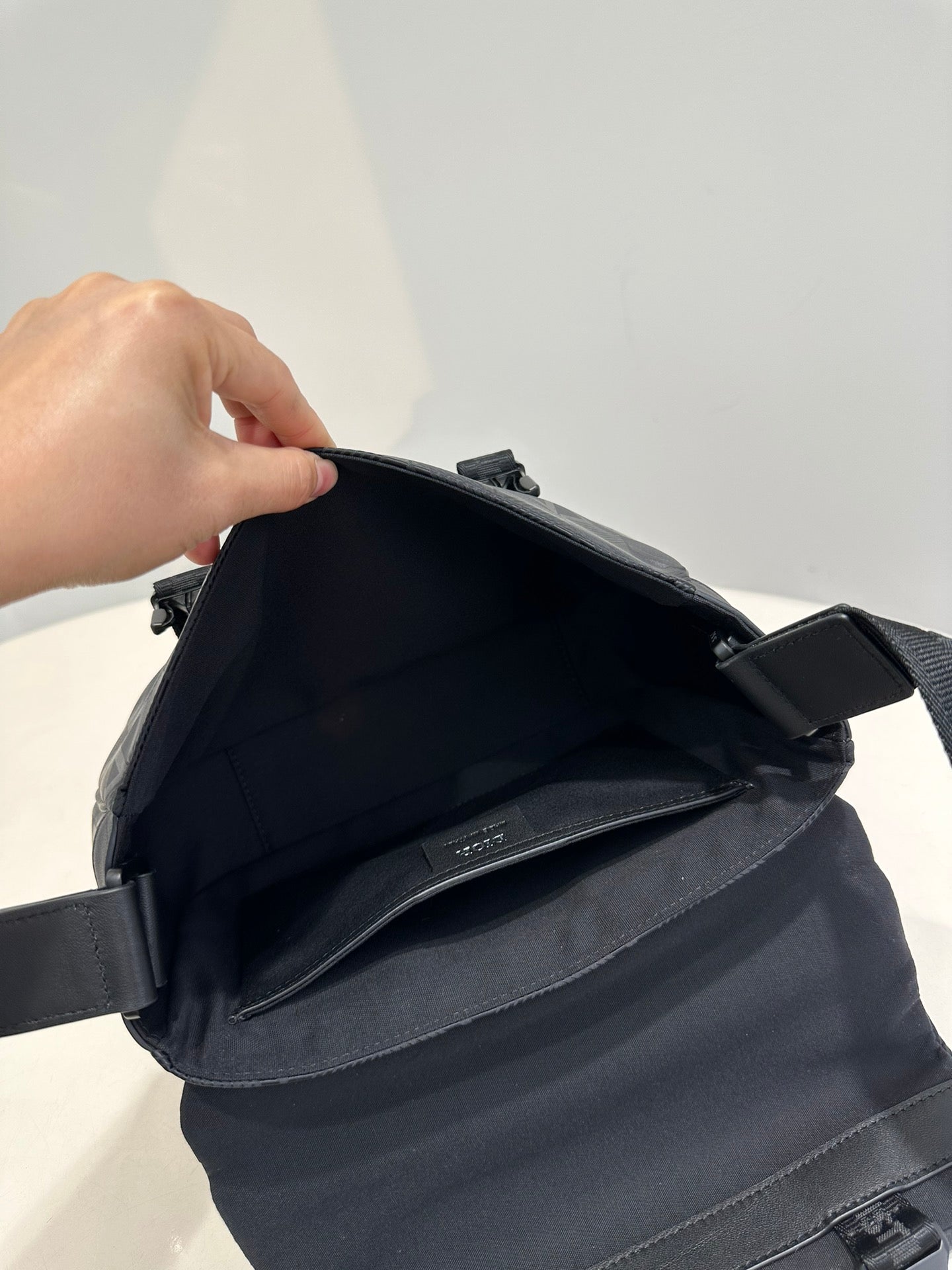 The new black nylon ski series one-shoulder oblique span bag, inspired by the classic messenger bag elements, reinterprets the classic design of the men's ski limited series, is a technical fabric to be decorated with the brand's eponymous pattern, with rainbow and reflective effects, the fabric is light and flexible, good gloss, and the material is durable, dust, rain and easy to manage. The side is decorated with a signature rubber patch, the top zipper and clamshell open and close design, the inside has an inner sticker bag, a large space, the capacity can hold the daily needs, the details are perfect, the back is quilted technological mesh woven pad, decorated with three-dimensional relief logo, soft and soft back is very comfortable. With the adjustable shoulder strap decorated with padded leather inserts, the upper class comes out immediately, very versatile, casual, neutral bags for both men and women, how to match all look good! Concave shape to take it is also a bar drop without problems, practical super bag, recommended