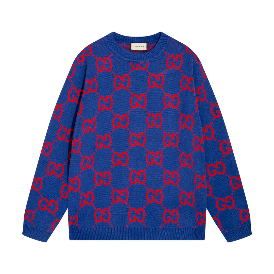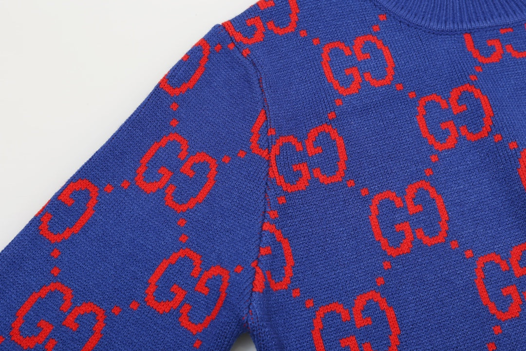 0909 New alphabet jacquard crew-neck sweater