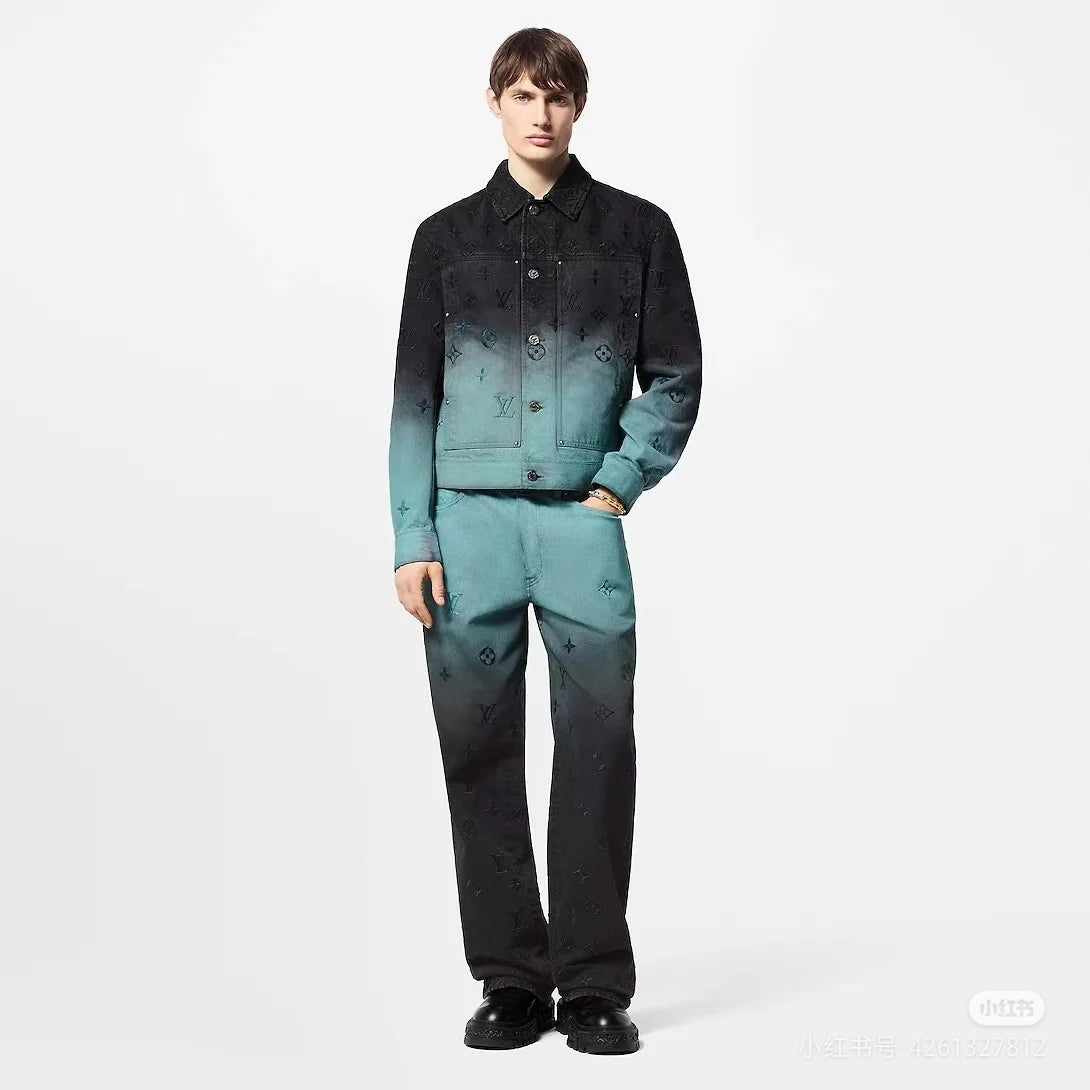 0916 Heavy gradient Aurora embroidered denim jacket