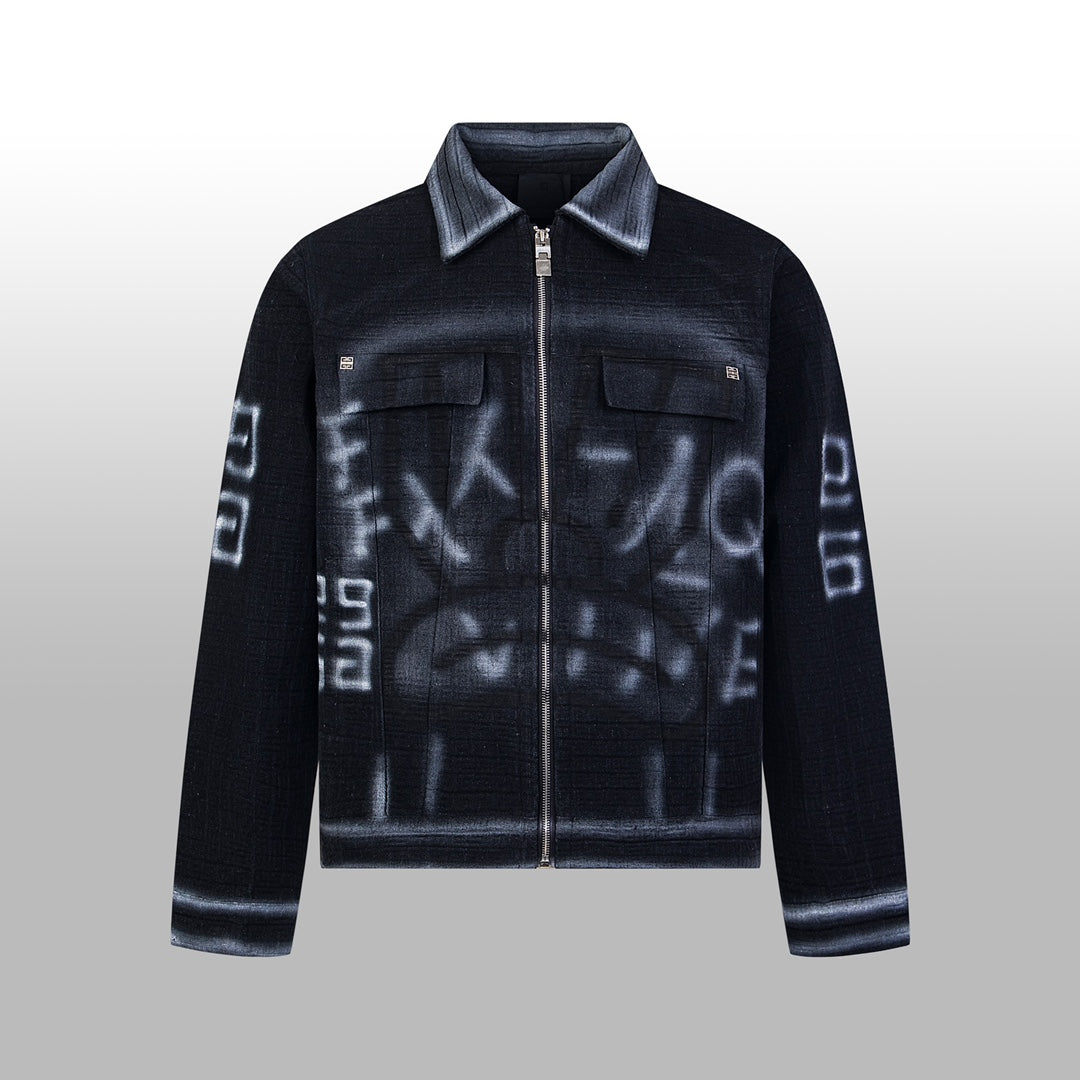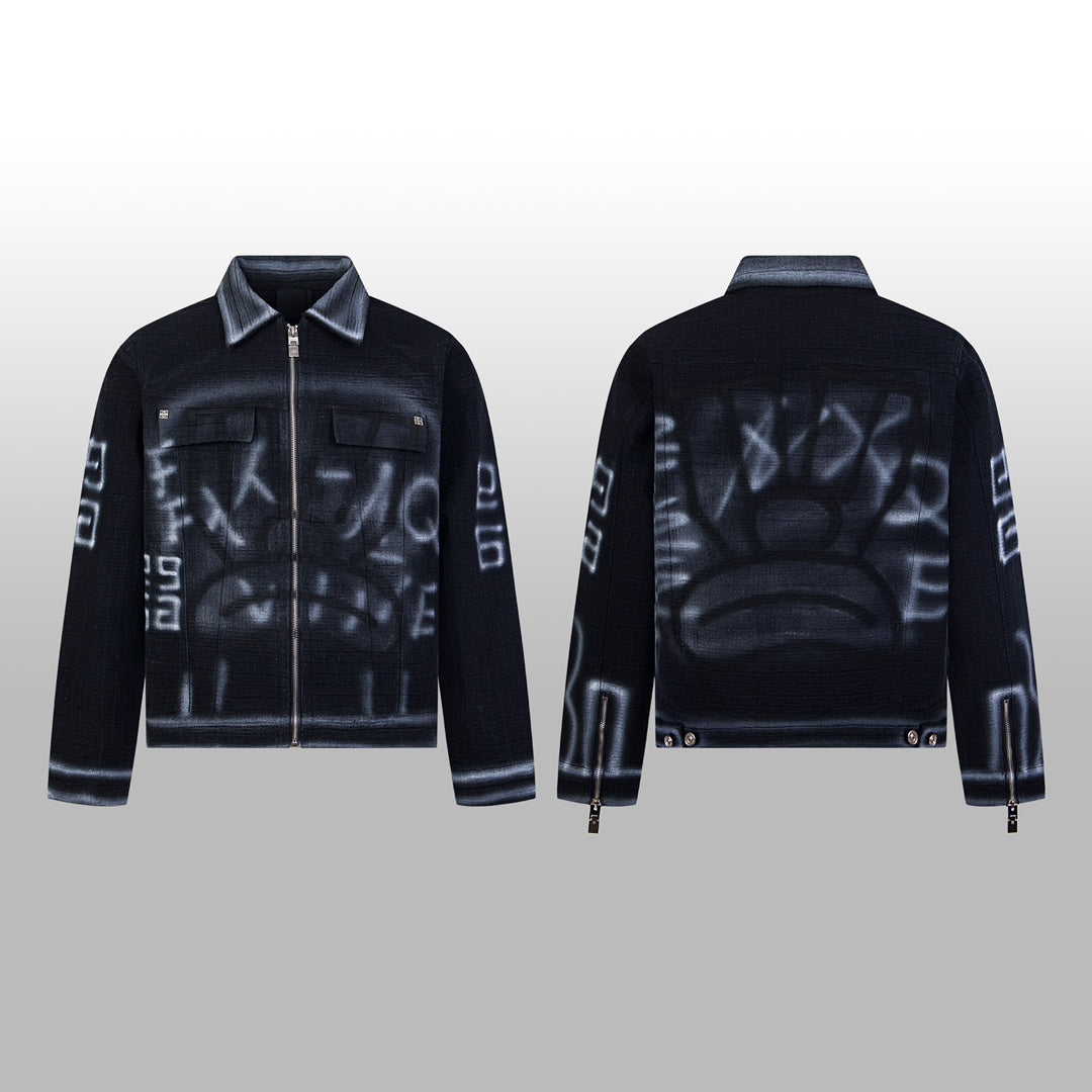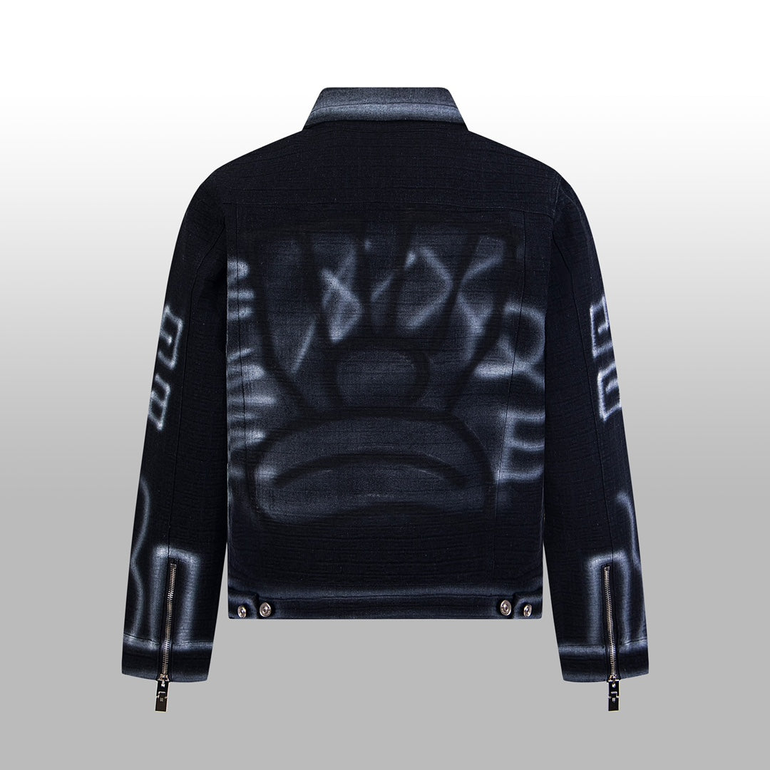 1014 High quality picture shot graffiti dark denim jacket