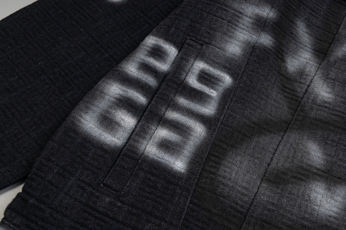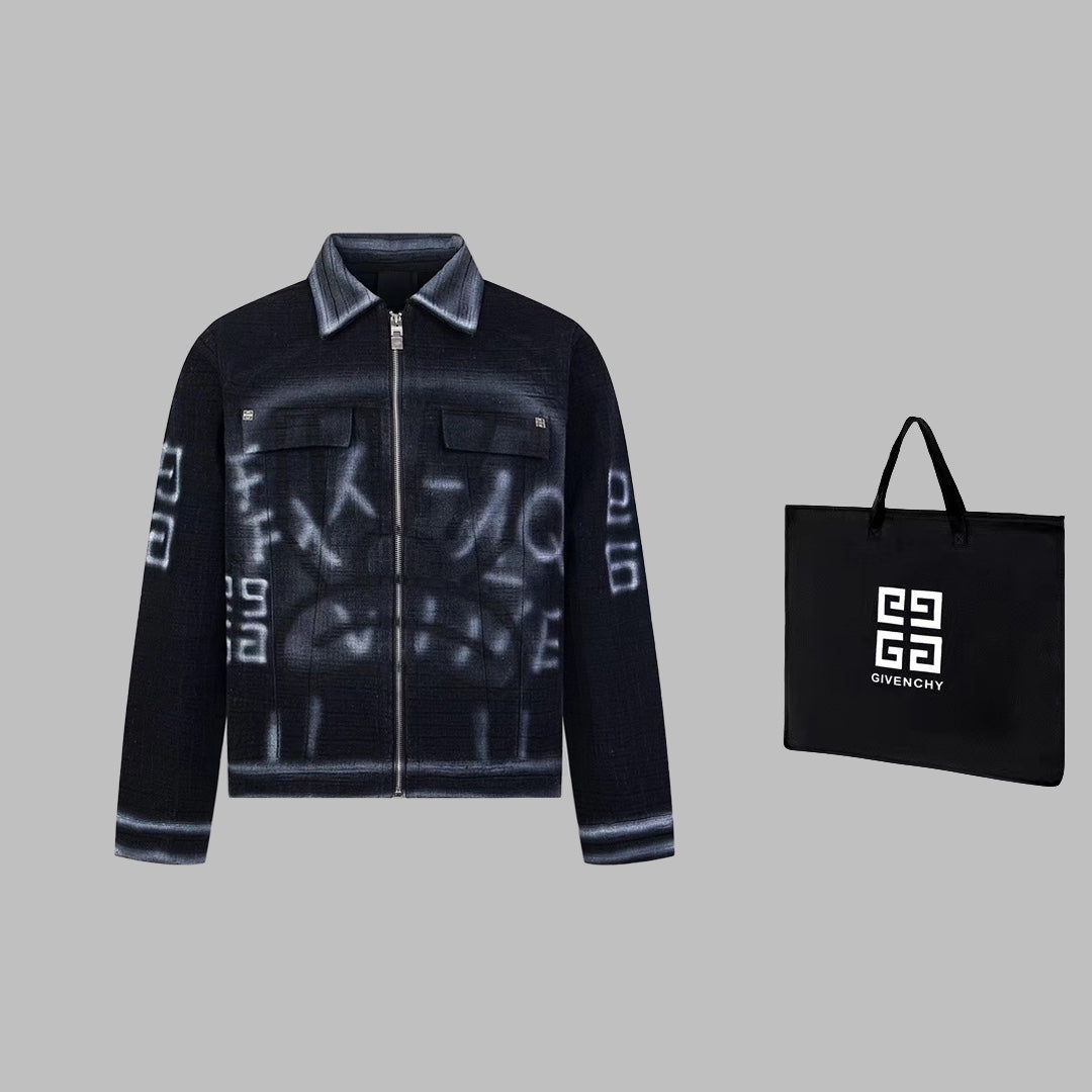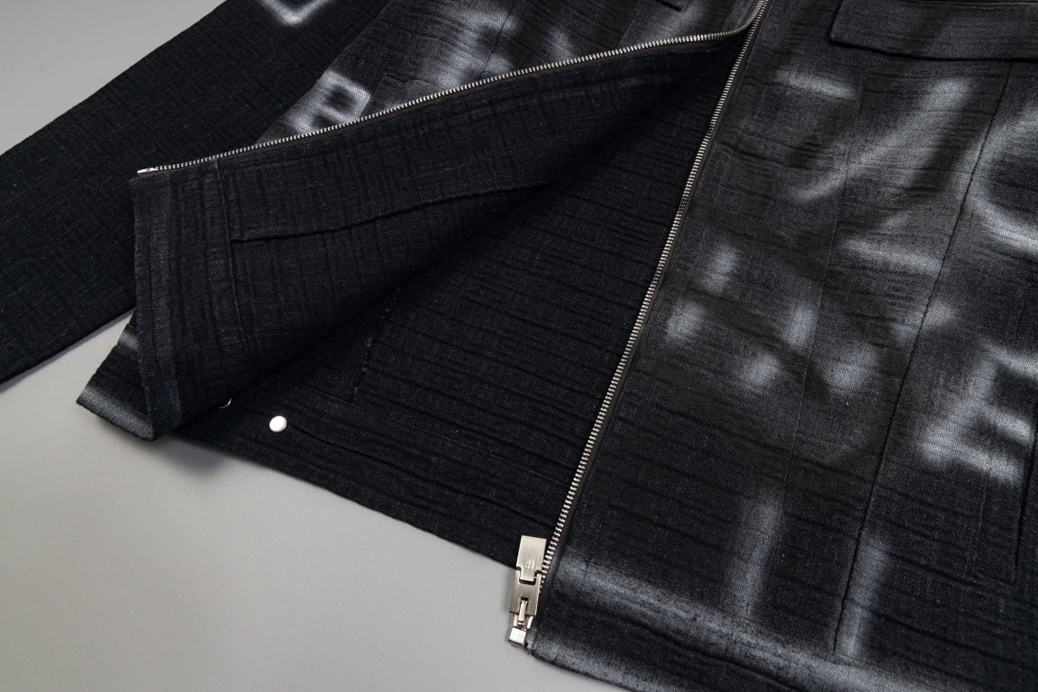 1014 High quality picture shot graffiti dark denim jacket