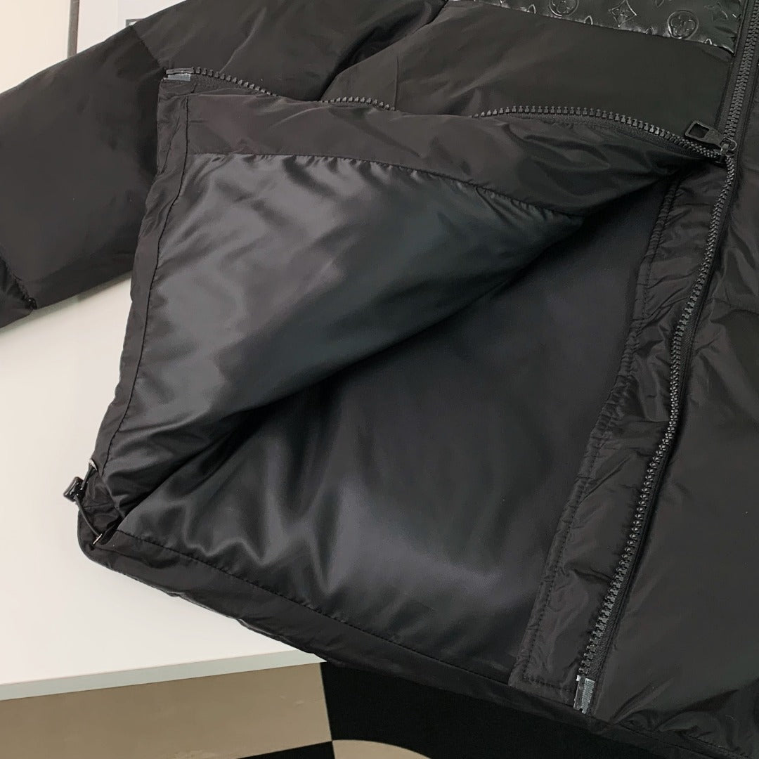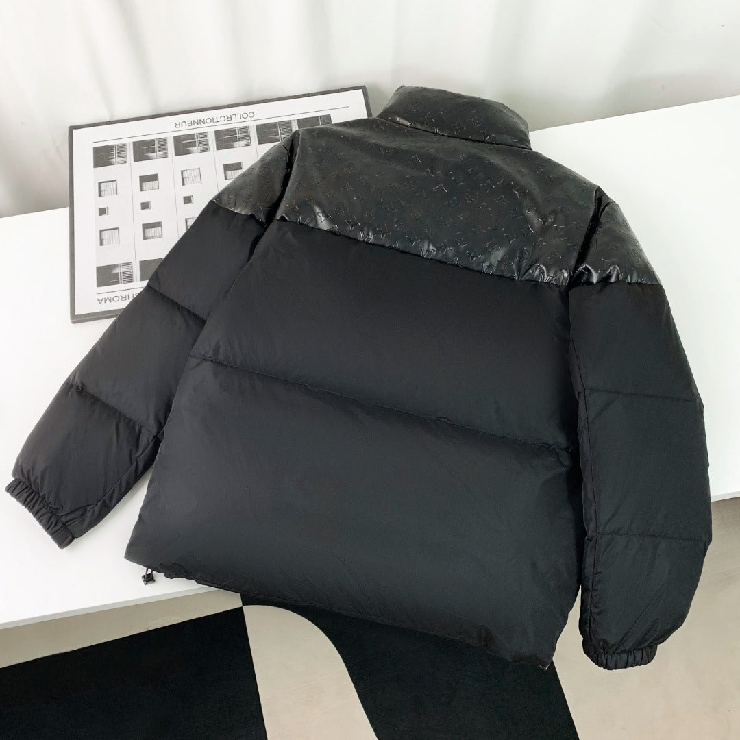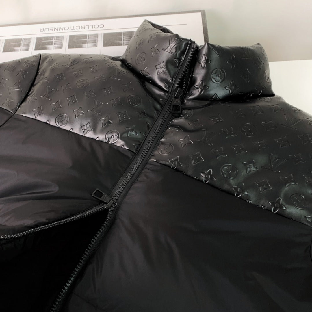 1102 New high quality embossed leather splicing stand collar down jacket