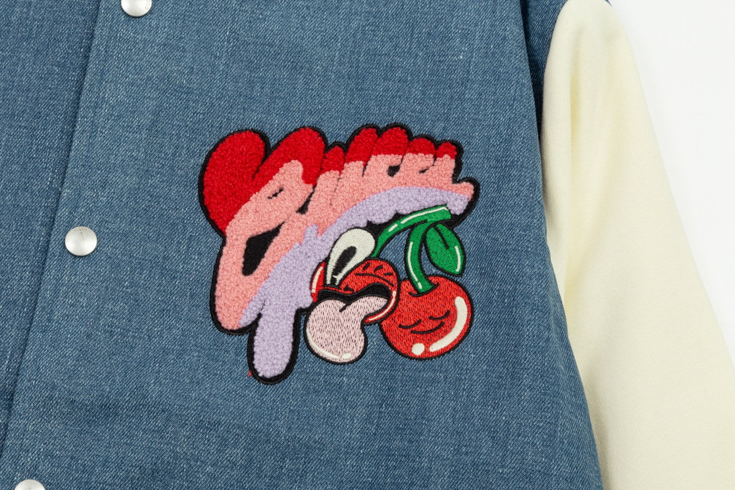 1111 New top of the line cherry embroidered denim patchwork baseball jacket