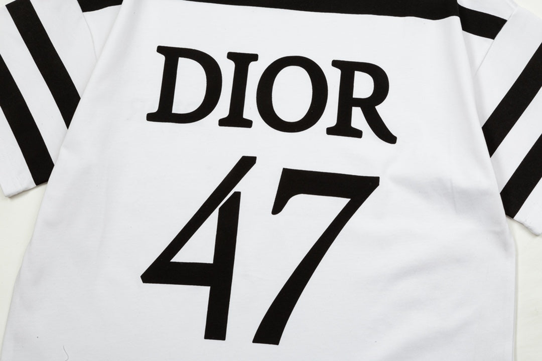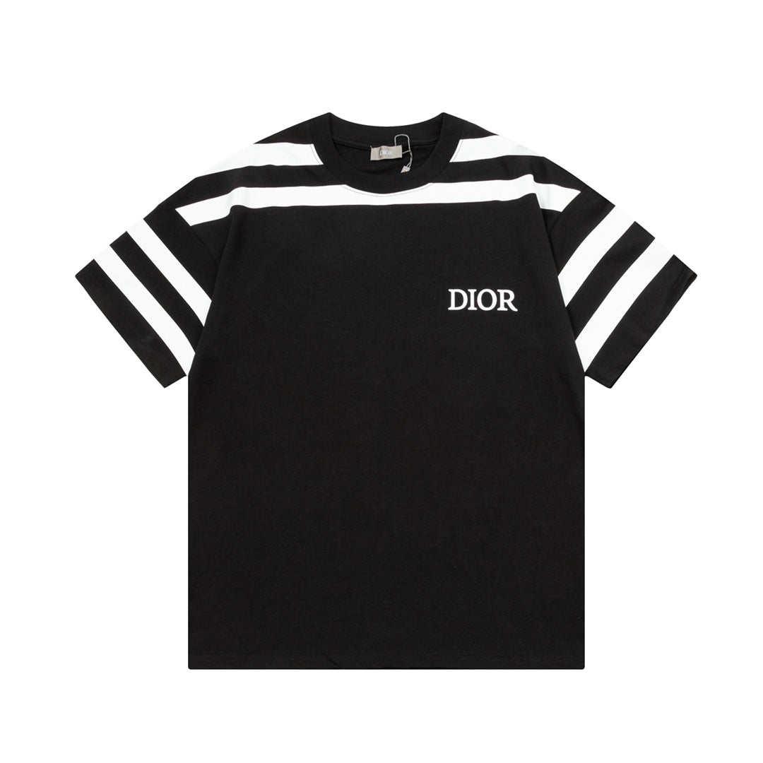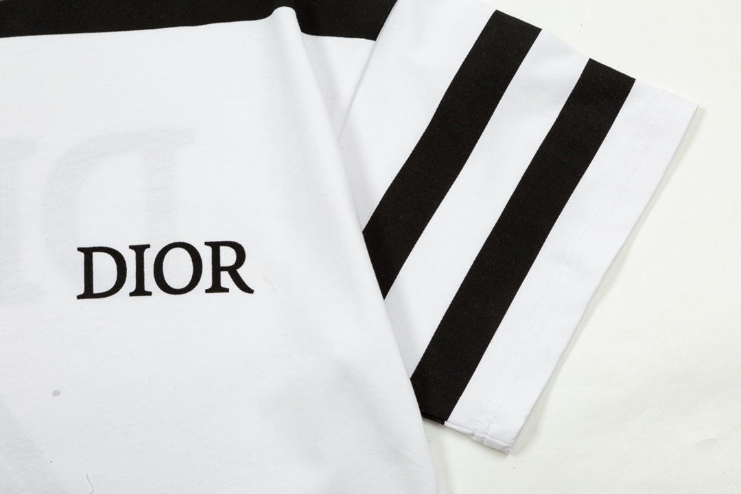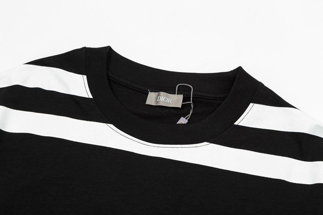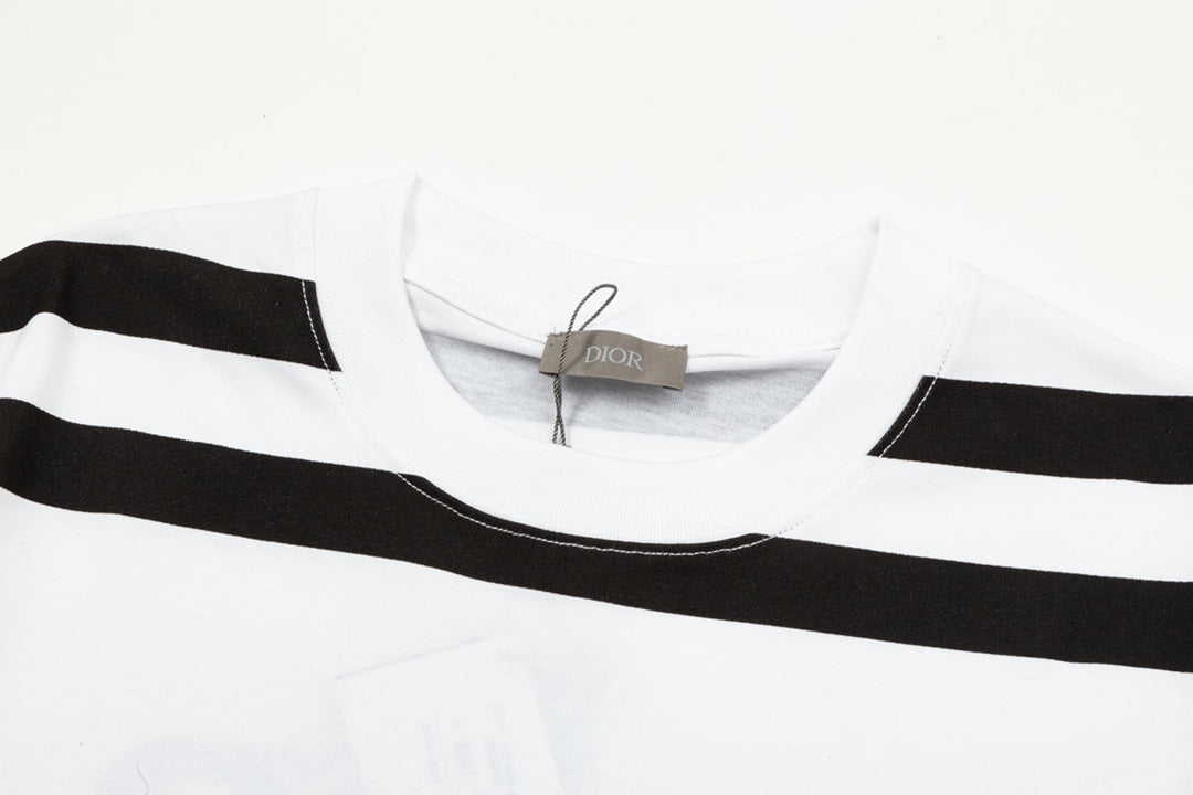 1219 New letter-stripe patchwork printed T-shirt