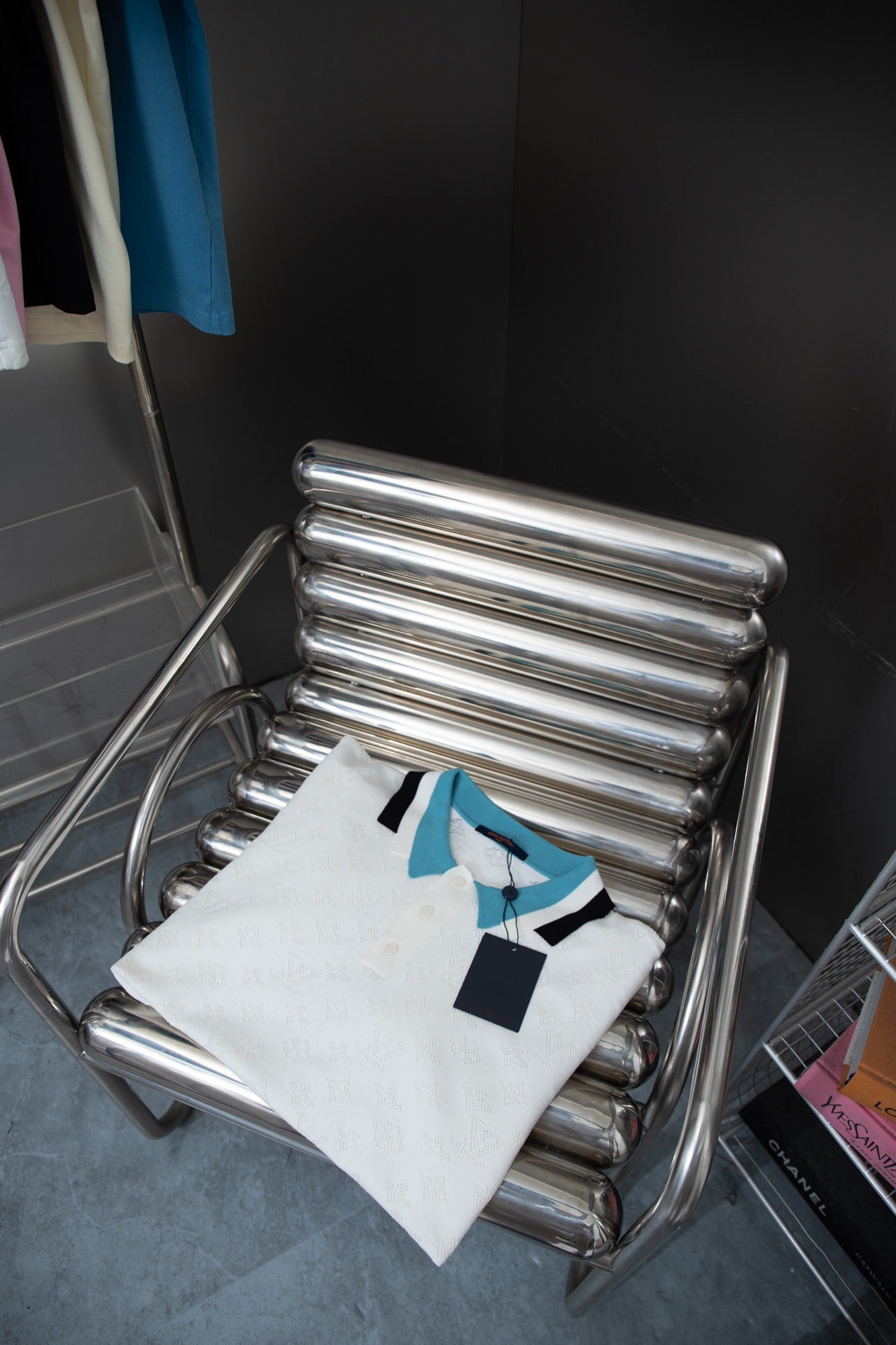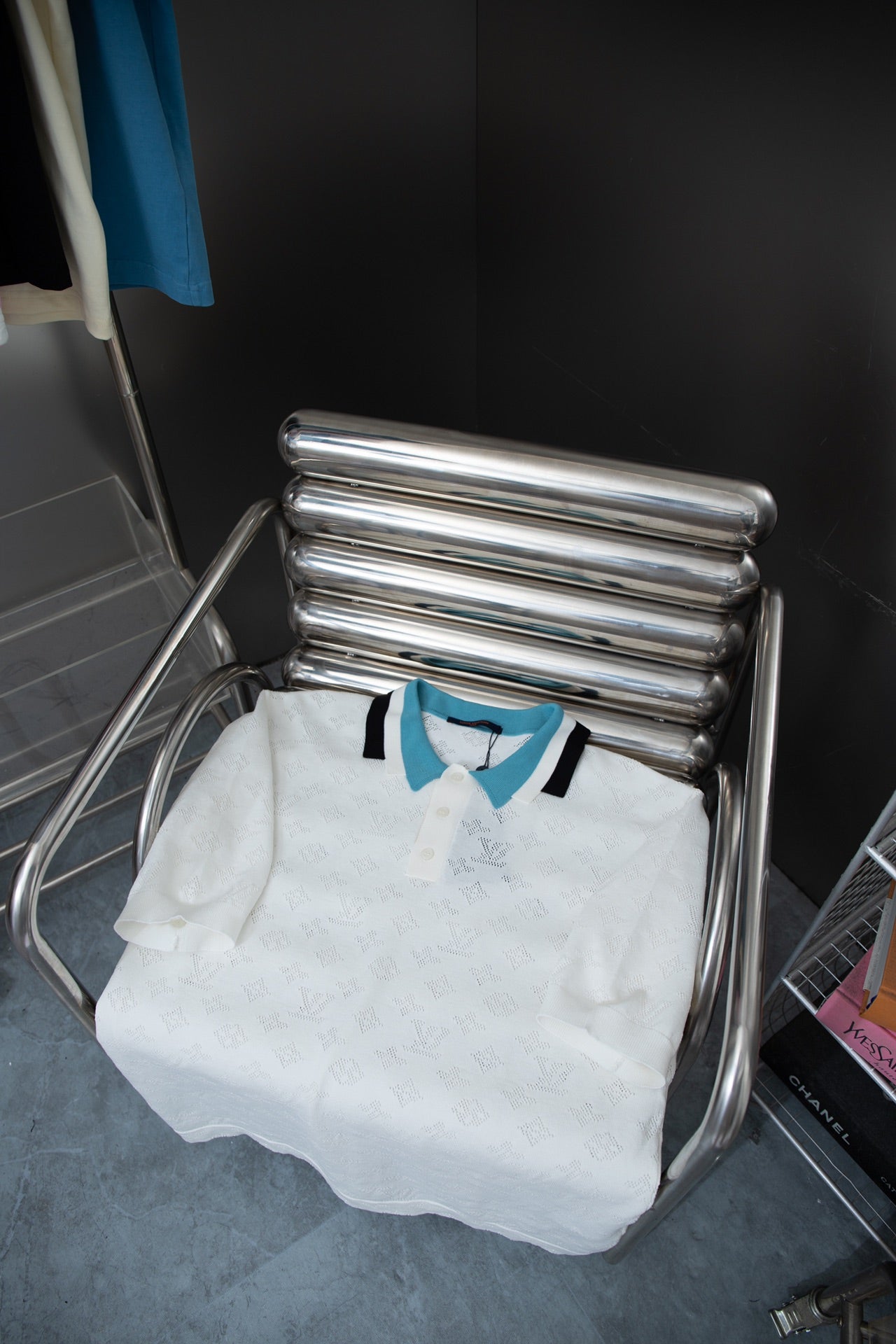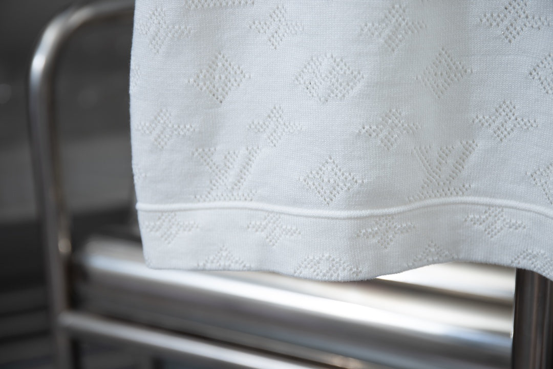 250218 Cut-out knit jacquard Polo shirt