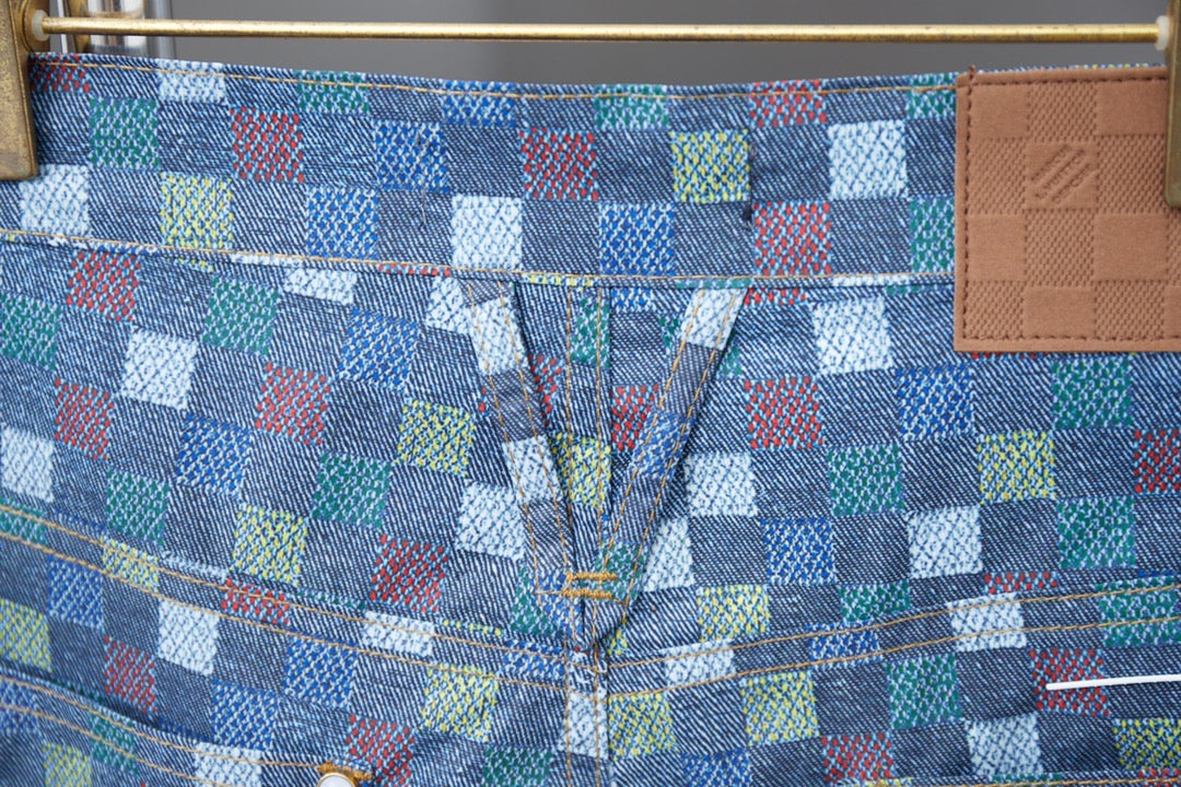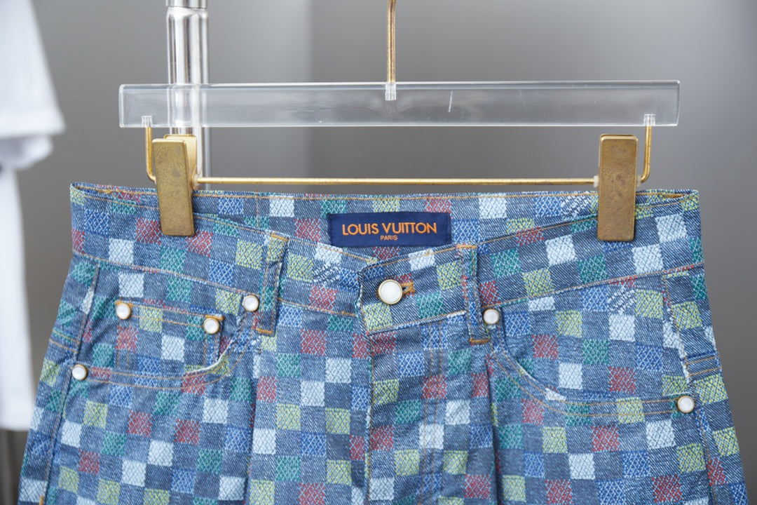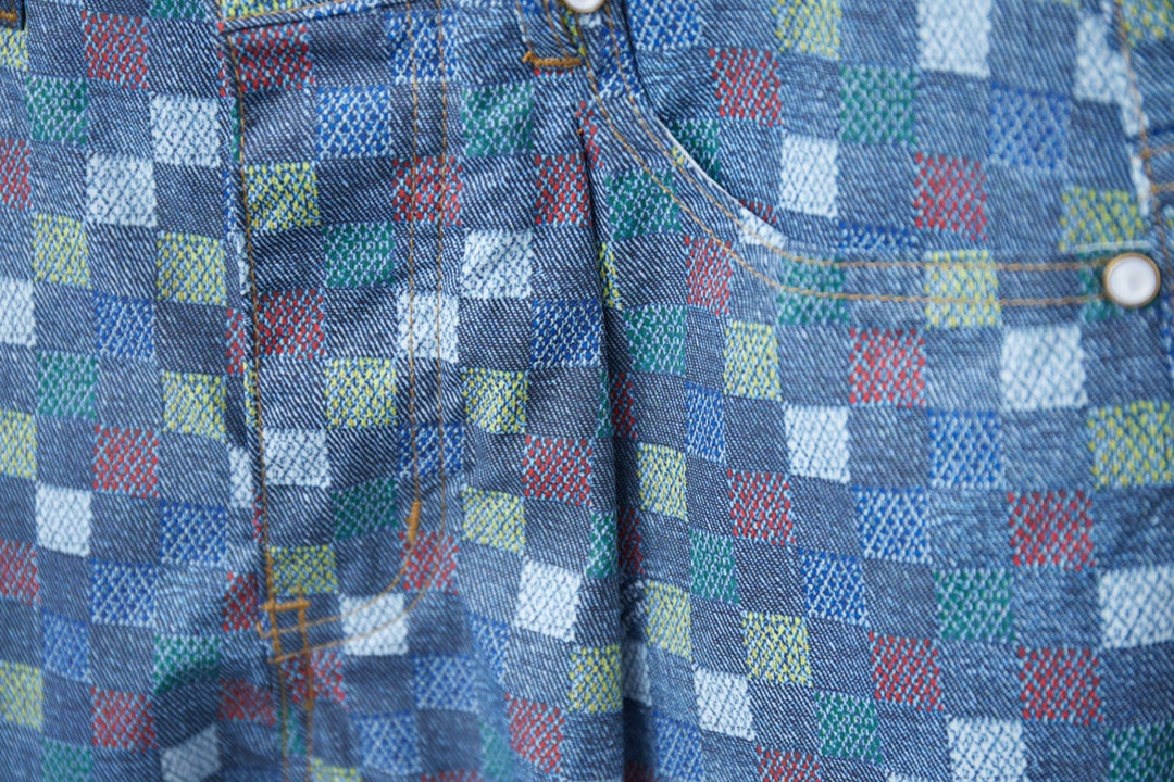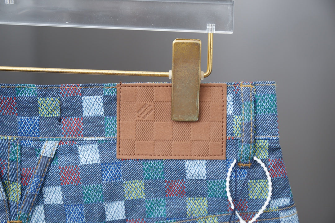 250520 New high-quality checkered Mosaic denim shorts
