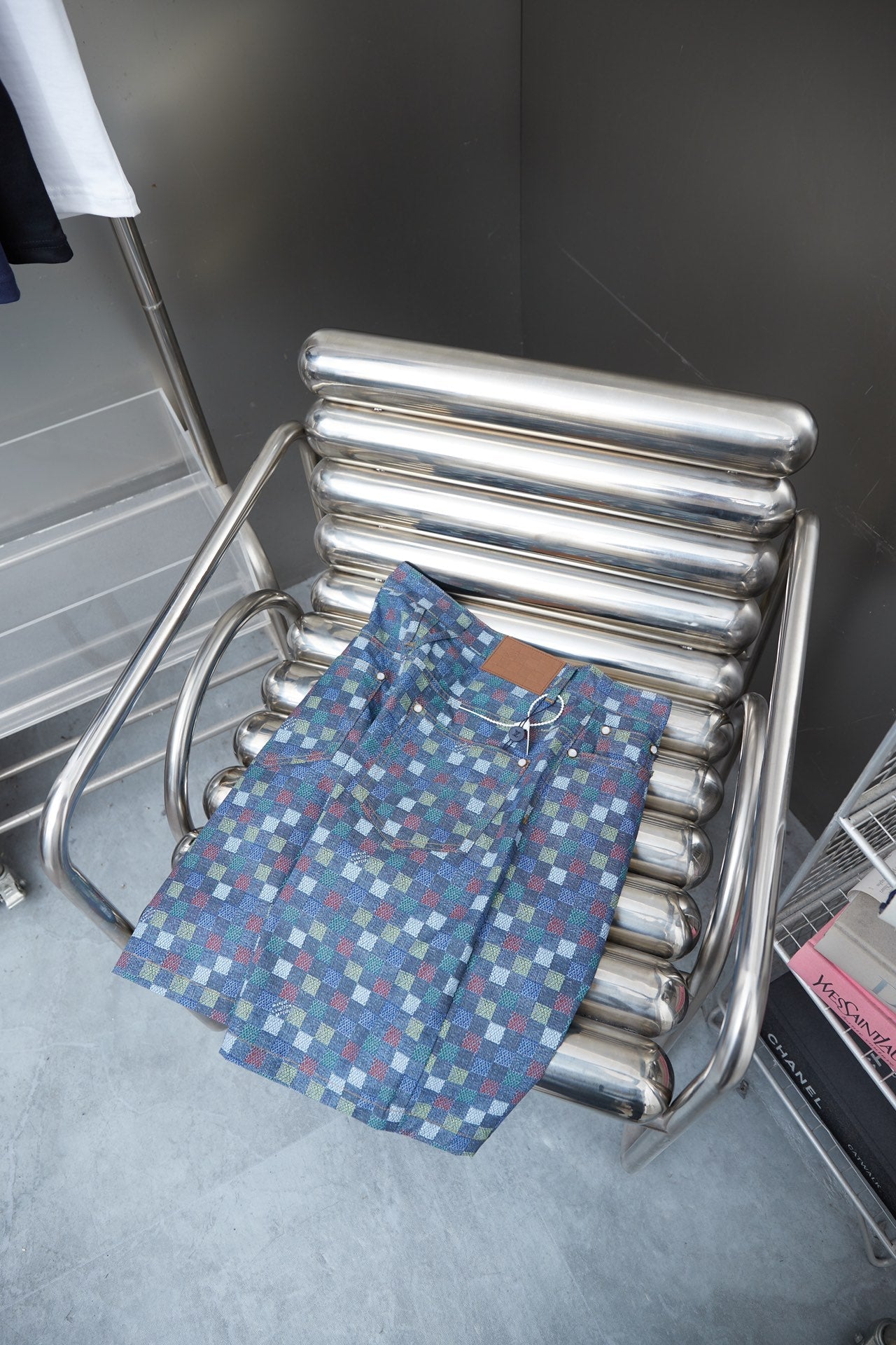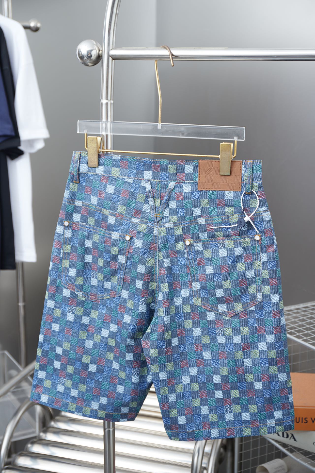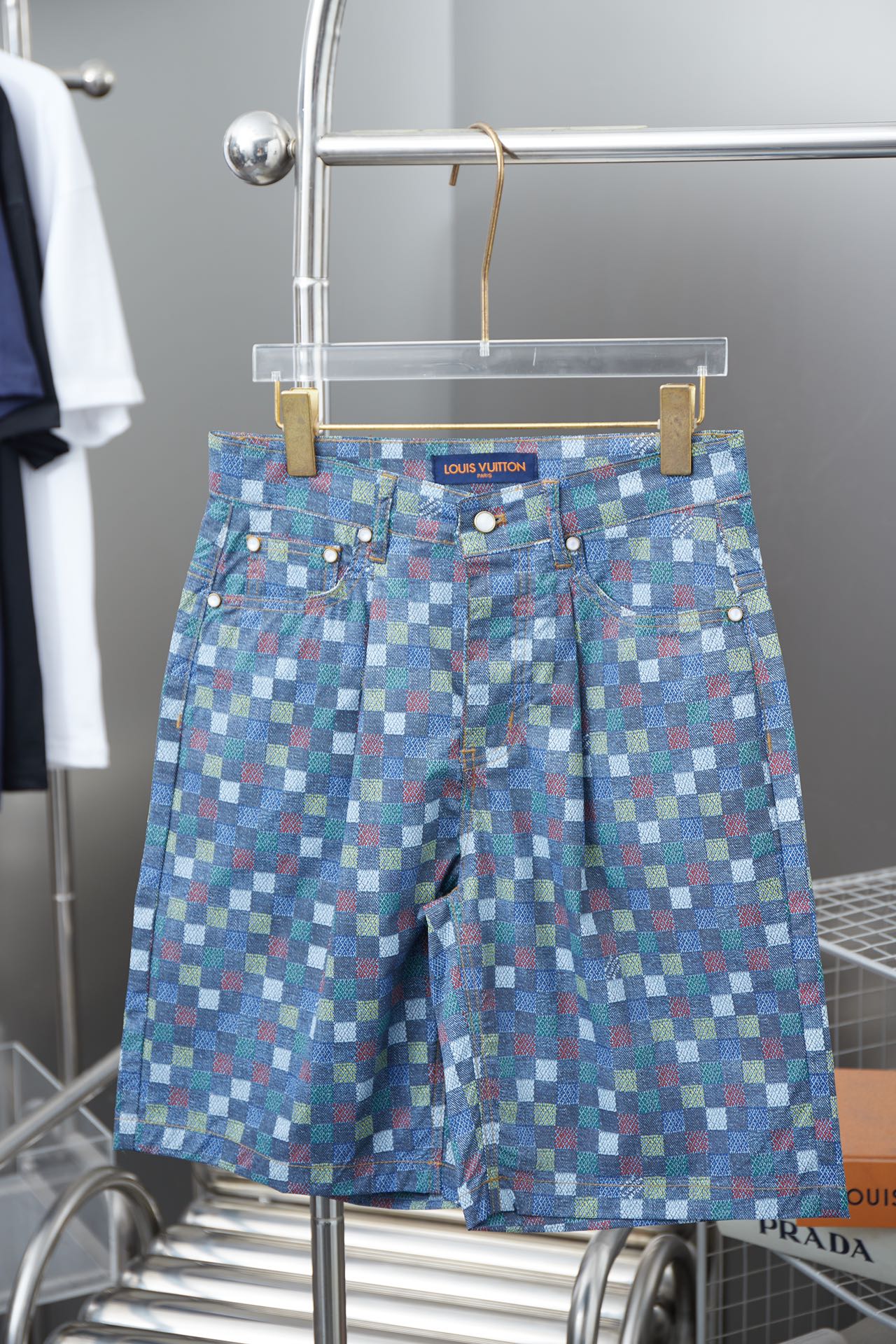 250520 New high-quality checkered Mosaic denim shorts