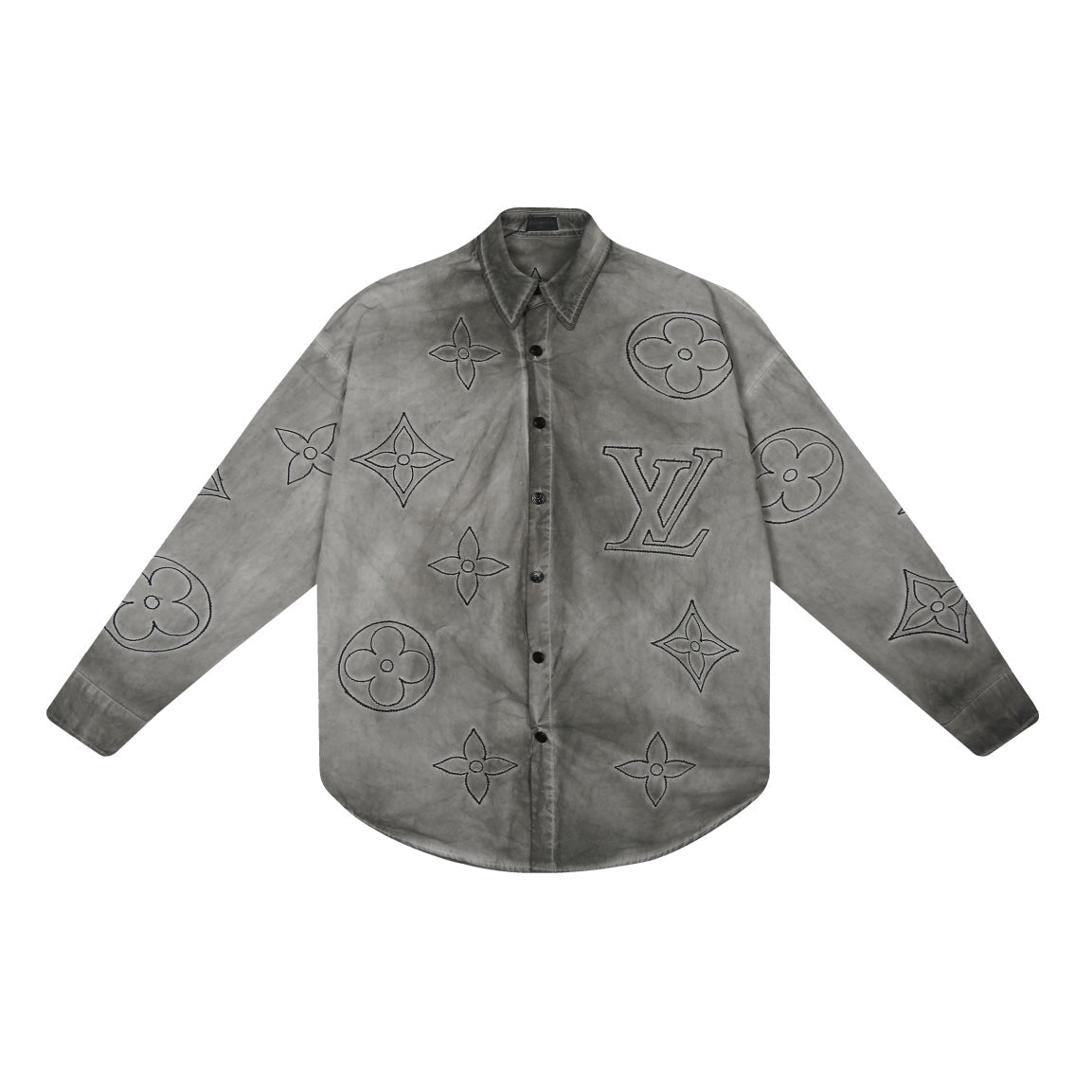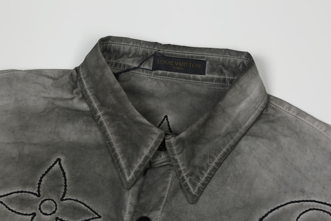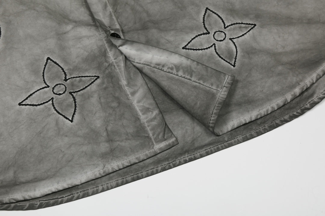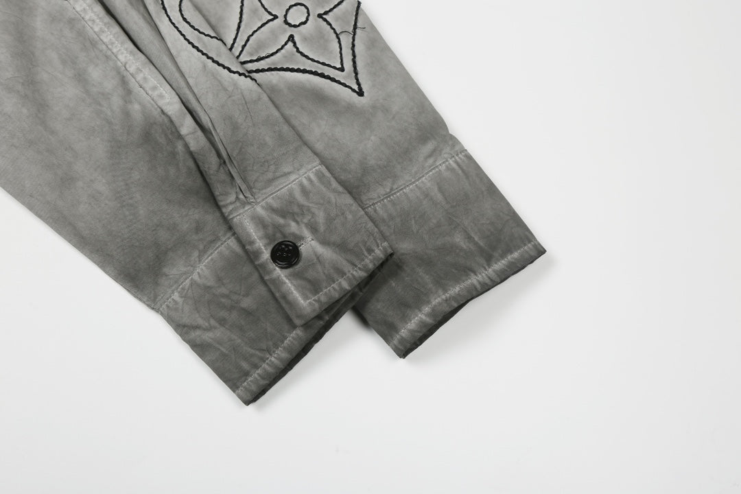 250520 New flower-position heavy industry color-blocking encrypted satin shirt