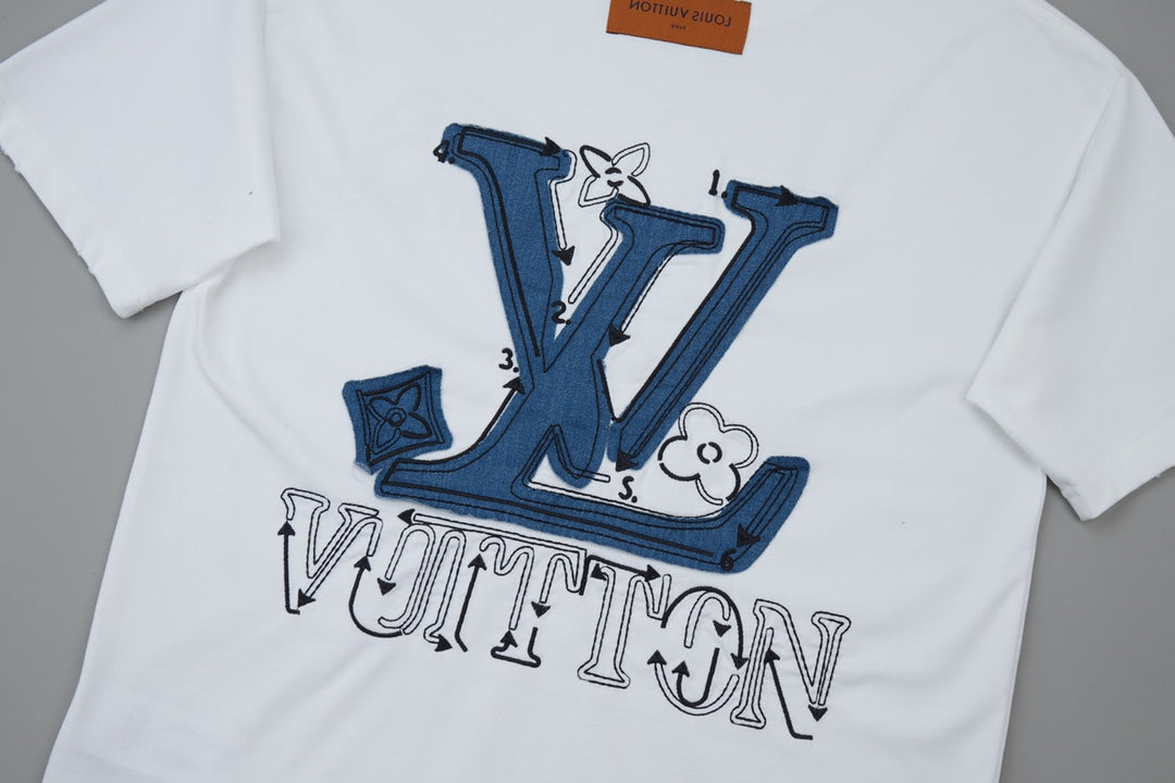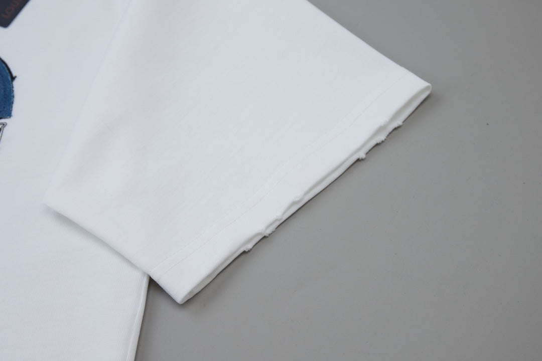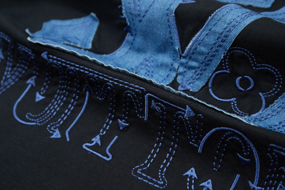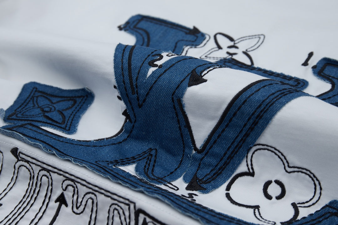 250527 New denim patchwork and embroidery T-shirt