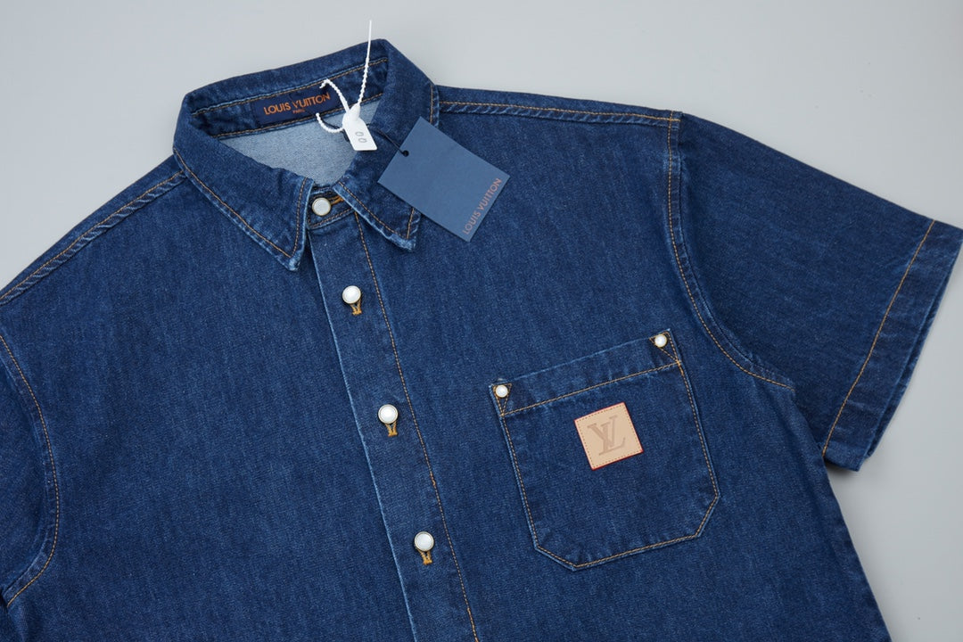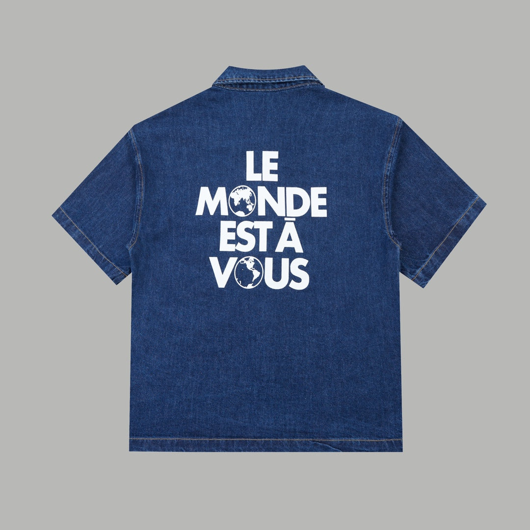 250527 New back flocking Earth denim waistcoat shirt