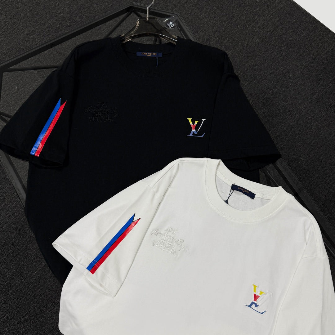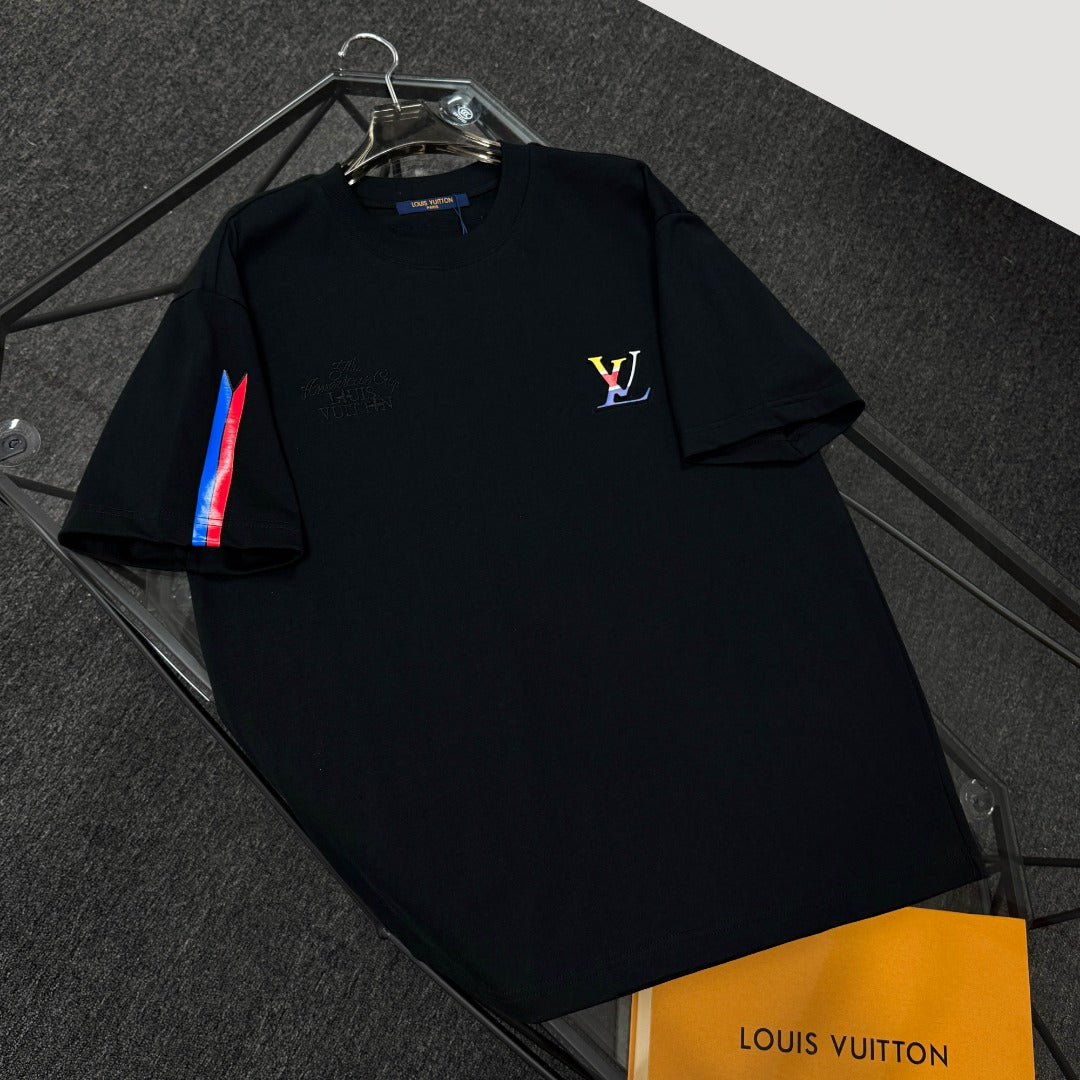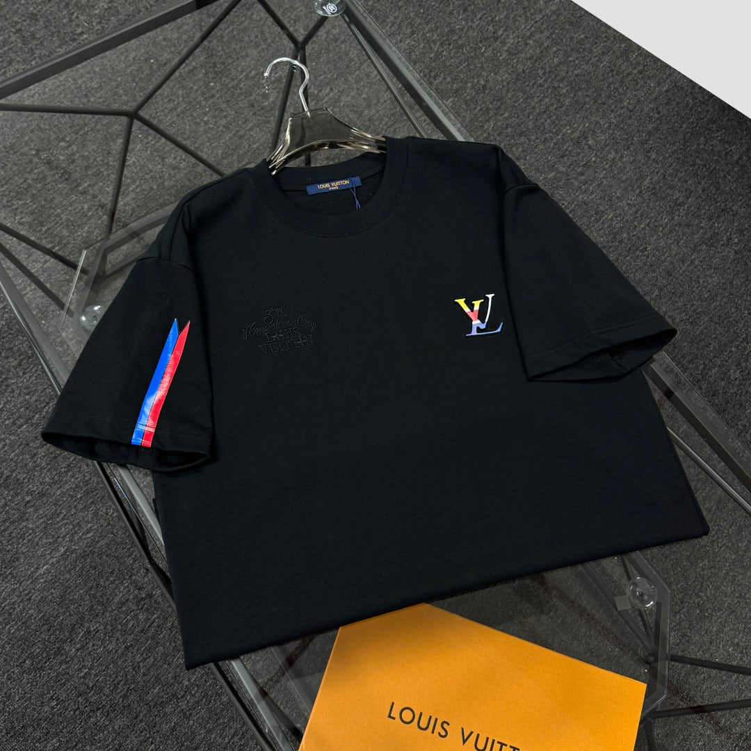 250624 New high-quality, simple cuff patchwork T-shirt