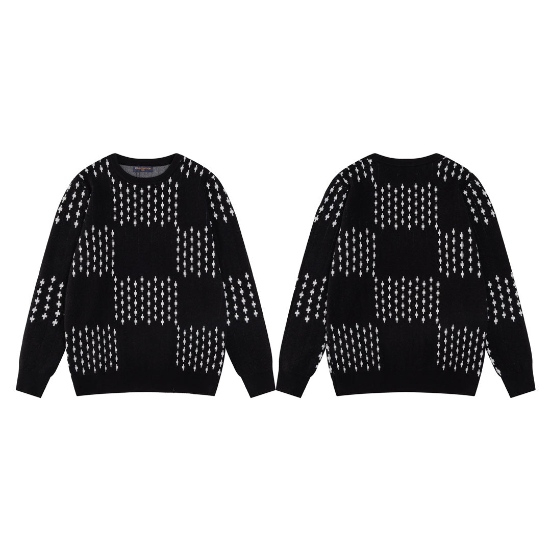 250729 New high-quality checkered couple round-neck sweaters